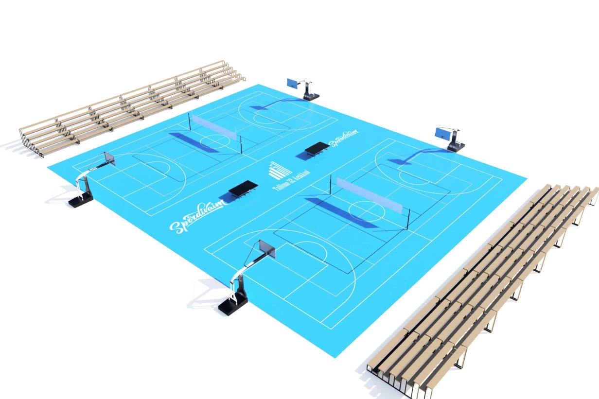 32.KK pallimängude areeni idee kätkeb endas aegunud palliplatside katete välja vahetamist, sealjuures uute kaasaegsete katete paigaldamist. Planeeritavad uuendused annaksid võimaluse talvel otse palliväljakutele rajada ka uisuplatsi. Uutel palliväljakutel saaks harrastada senisest oluliselt rohkem spordialasid ehk lisaks korvpallile võrkpalli, tennist, sulgpalli ja lauatennist. Kaasaegseid väljakuid saaksid kasutada ka ratastoolisportlased (nt kooli lähedal tegutsev ratastoolispordiklubi).