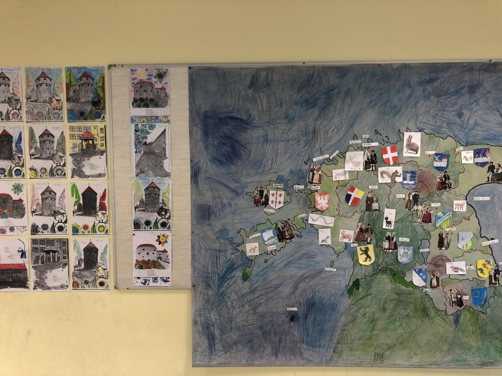 1. klasside koostöö tulemusel valmis Eestimaa kaart, millele 1.c klassi lapsed joonistasid maakondade vapid, 1.b klass lisas Eestis elavad metsloomad ning 1.a klassi õpilased rahvariietes inimesed. Lisaks märgiti kaardile maakondade keskused ning suuremad saared ja veekogud. Kõik klassid said ühiselt kaarti värvida. Päeva lõpus vaadati filmi “Ilus Eesti”.