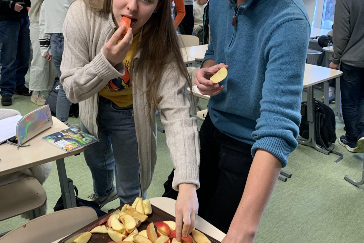 Klassijuhatajad käsitlesid tervisliku toitumise teemat tundides erinevalt. 12.a ei piirdunud ainult loenguga „Hea uni ja tervislik toit“, vaid koos degusteeritigi neid toiduaineid, mis head und soodustavad.