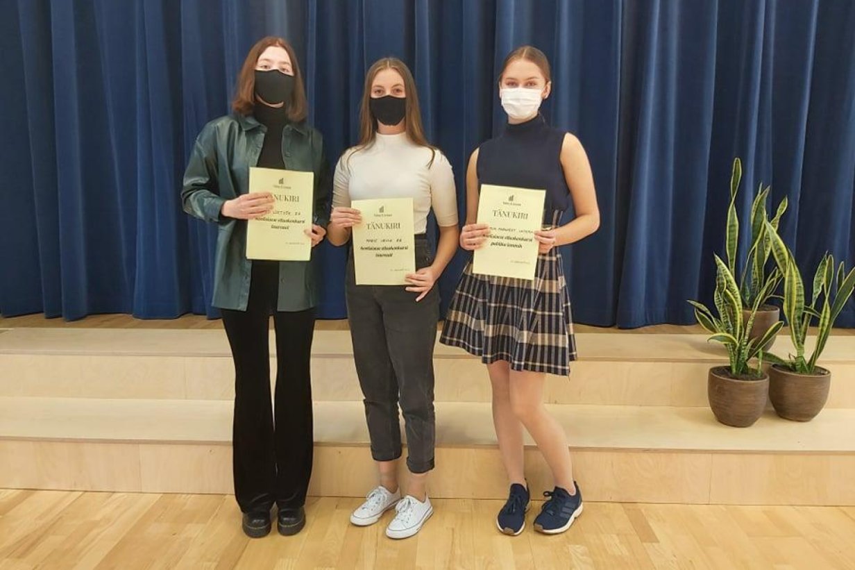 - 10.-12. klasside arvestuses valiti laureaatideks 12.d klassi õpilased Liis Õunpuu ja Mattias Nurga (juhendaja Maret Varblas) ning Uku-Kristjan Sass (11.d, juhendaja Kaili Ranne). Žürii andis välja kaks eripreemiat Mattias Härmile (10.d, juhendaja Eva Kalbus) ja Aaron Thor Härmile (12.d, juhendaja Maret Varblas). Gümnasistide lemmikuks osutus Mattias Härm (10.d).