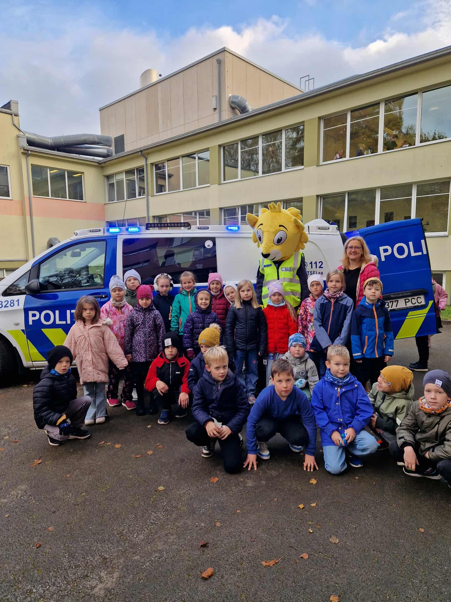 Kõikidele 1. klassidele tulid 8. oktoobril kooli külla politseinikud politseiautoga ja laste lemmiktegelase Lõvi Leoga.