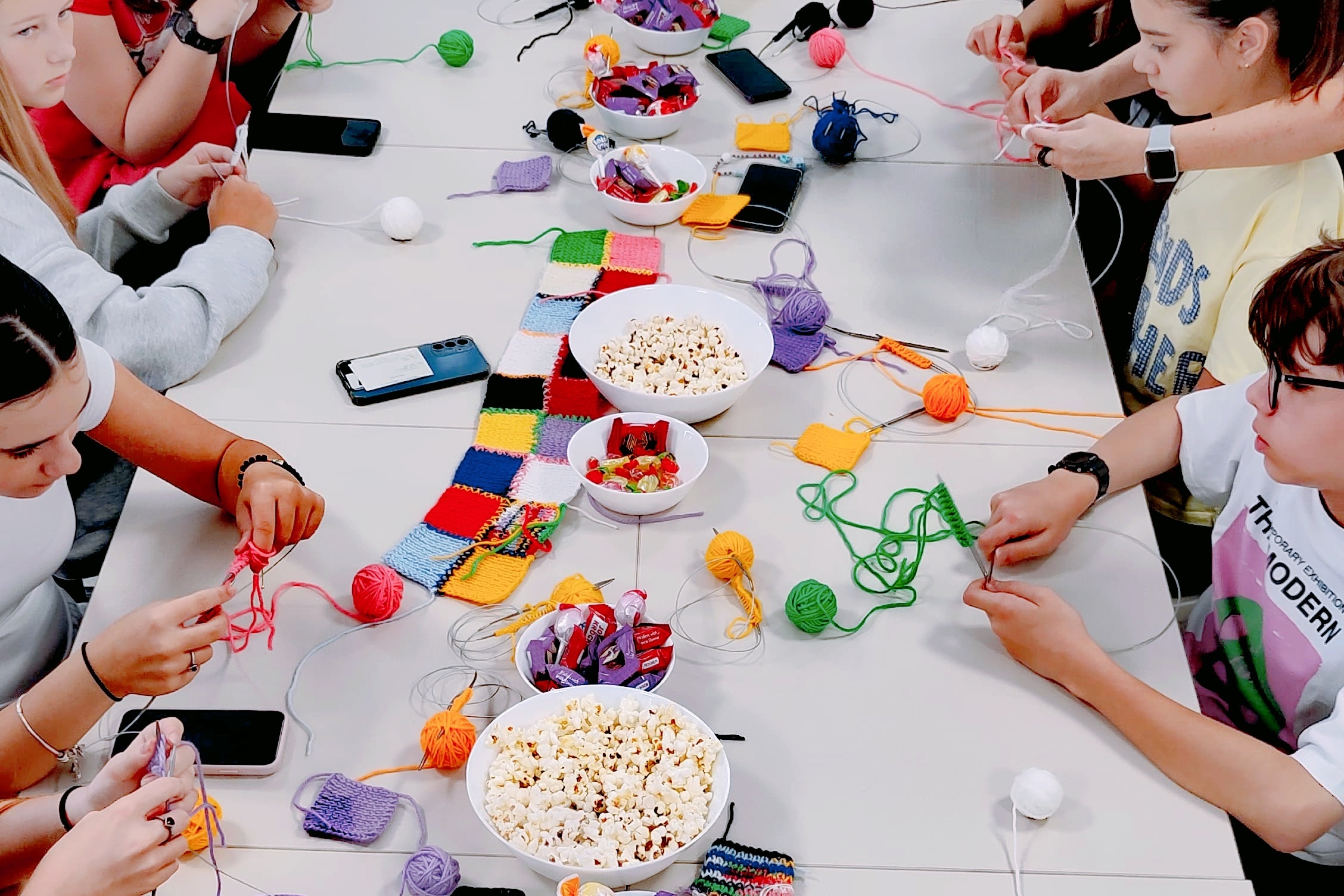 Throughout the project week, students and teachers participated in various creative workshops – learning how to design posters in Canva, weave rugs, and crochet traditional patterns.