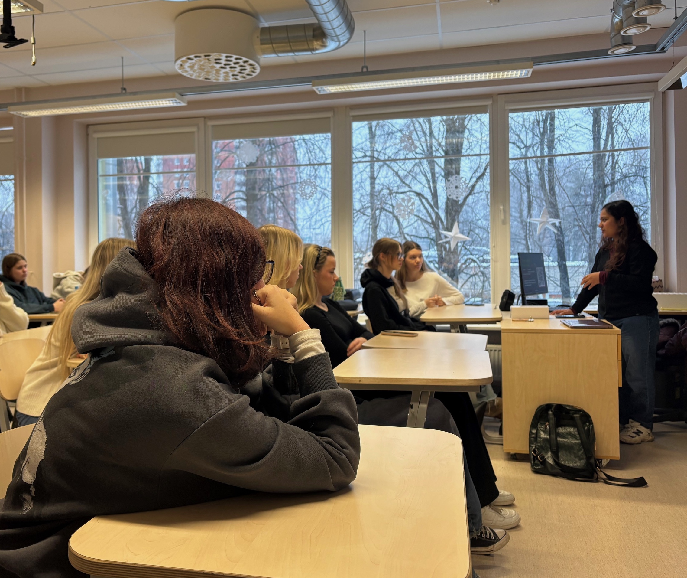 Tunni eesmärk oli tutvustada erinevaid arvukaid Erasmus+ pakutavaid võimalusi ning seda, kuidas leida nende hulgast just endale sobiv programm. Sai kuulda Sana kui kogenud Erasmuse tudengi isiklikke soovitusi ning uurida tema kogemuste kohta. Oma mõtteid ja kogemusi välismaal õppimisest jagas ka 12.a õpilane ja ESNi liige Eva-Lia Braun.