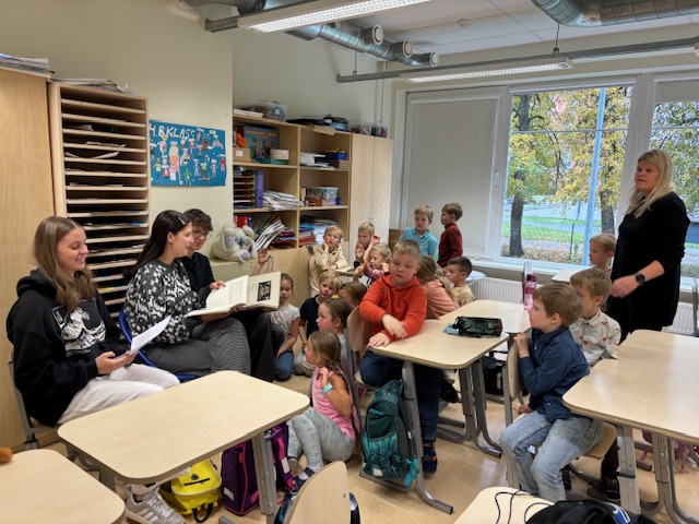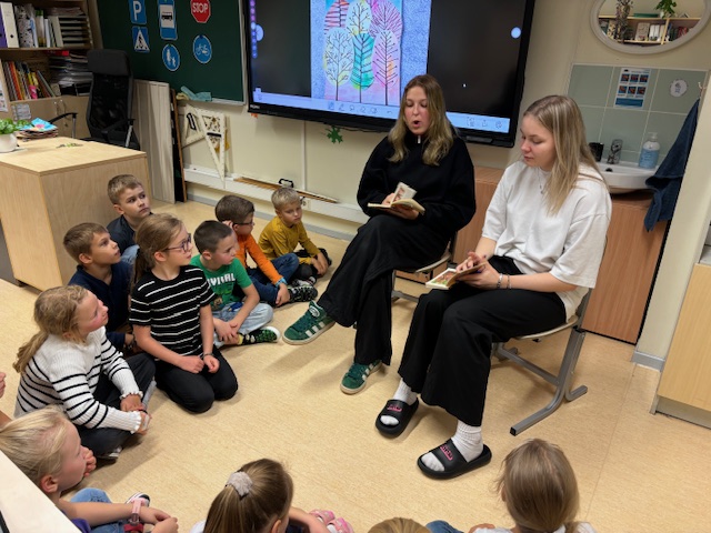 Peale Kreete ja Mari-Liisi esinemist läksid 12.d ja 11.d teatriklassi õpilased 1. klassidesse ning teise vahetuse alguses 2.a, 2.c ja 3.c klassi ette lugema erinevate maade muinasjutte. Ühtviisi põnevad ja huvitavalt esitatud olid nii slovaki, bulgaaria kui ka katalaani lood. Väikesed kuulajad oma õpetajatega jäid rahule ja ettelugejad kiitsid vaikse tähelepaneliku kuulamise eest.