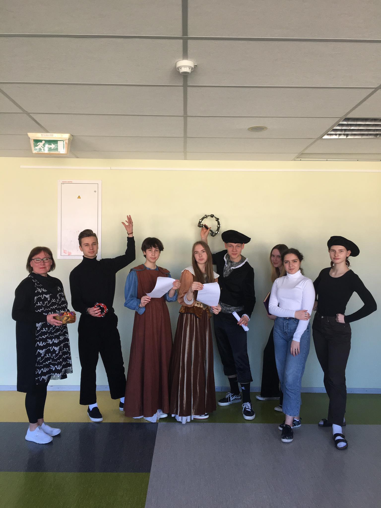 Vahetundides esitasid koridorides 10.d ja 11.d klassi õpilased W. Shakespeare´i sonette ja monolooge tema näidenditest.