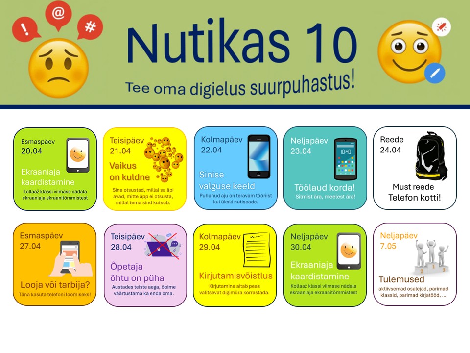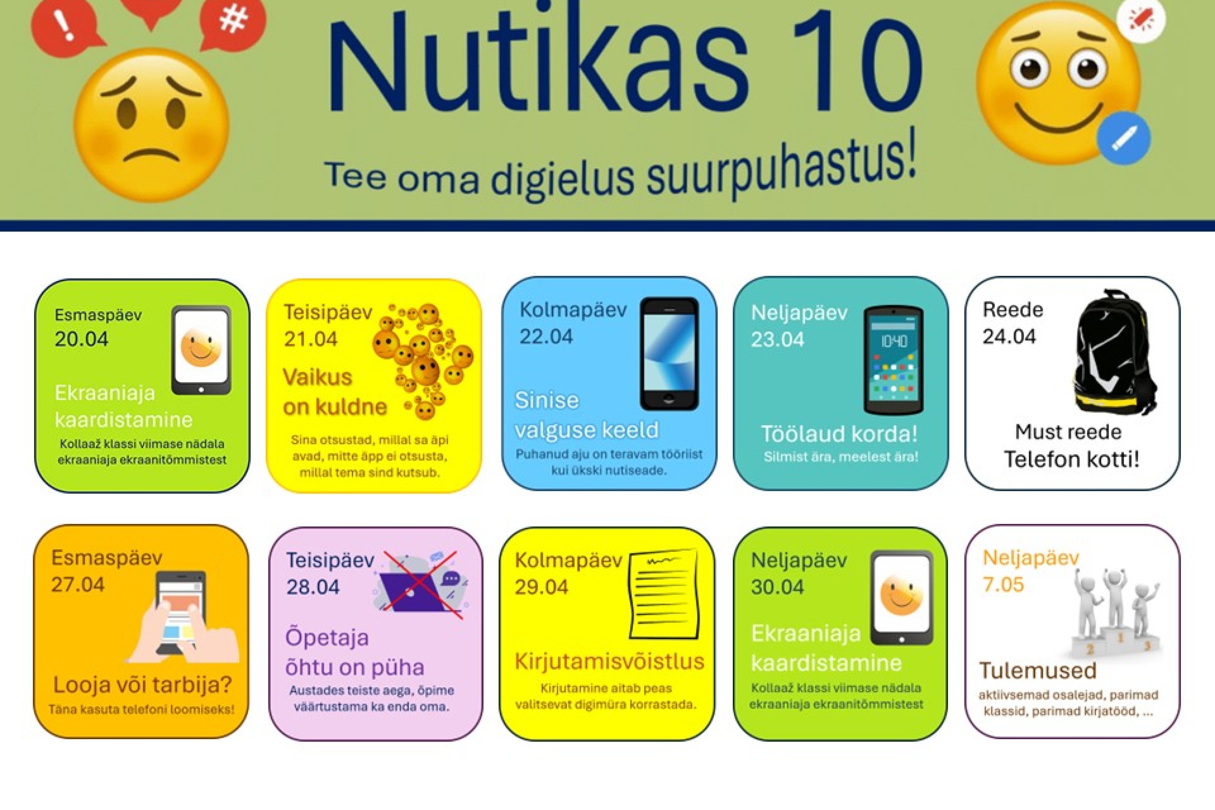 20. aprillil sai alguse 10-päevane NuTi hüppe kuu väljakutse „Nutikas KÜMME! Tehnoloogia kui tööriist, mitte peremees". Erinevate väljakutsete abil saab õppida paremini juhtima oma ekraaniaega, hoidma fookust ning toetada head und ja vaimset heaolu.