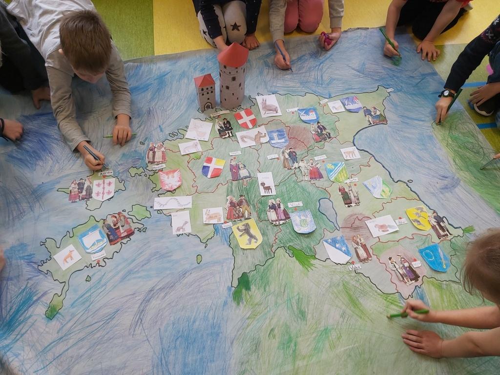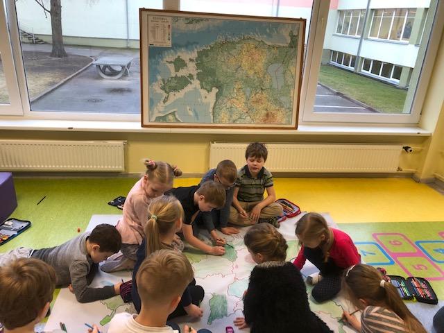 1. klasside koostöö tulemusel valmis Eestimaa kaart, millele 1.c klassi lapsed joonistasid maakondade vapid, 1.b klass lisas Eestis elavad metsloomad ning 1.a klassi õpilased rahvariietes inimesed. Lisaks märgiti kaardile maakondade keskused ning suuremad saared ja veekogud. Kõik klassid said ühiselt kaarti värvida. Päeva lõpus vaadati filmi “Ilus Eesti”.