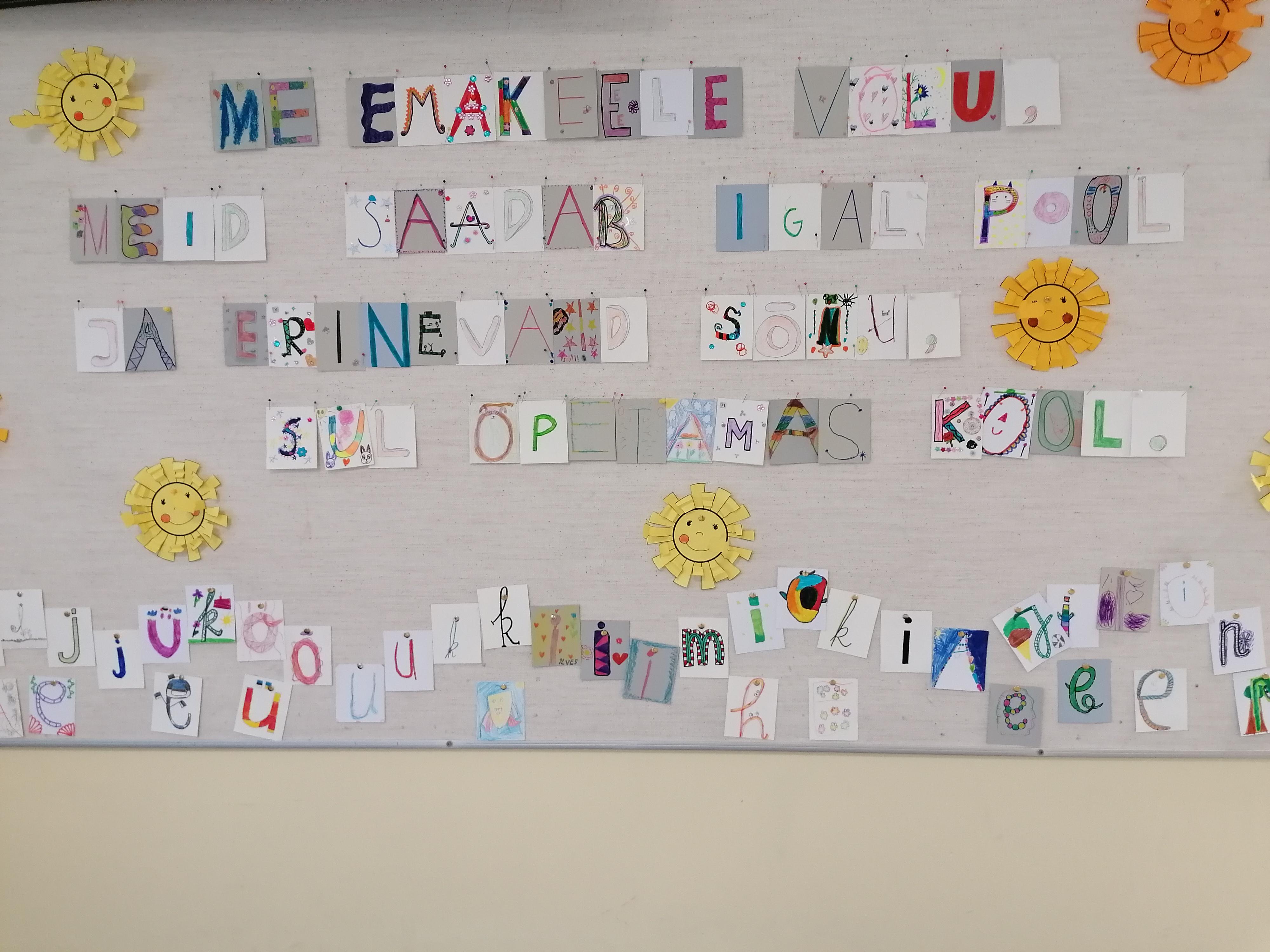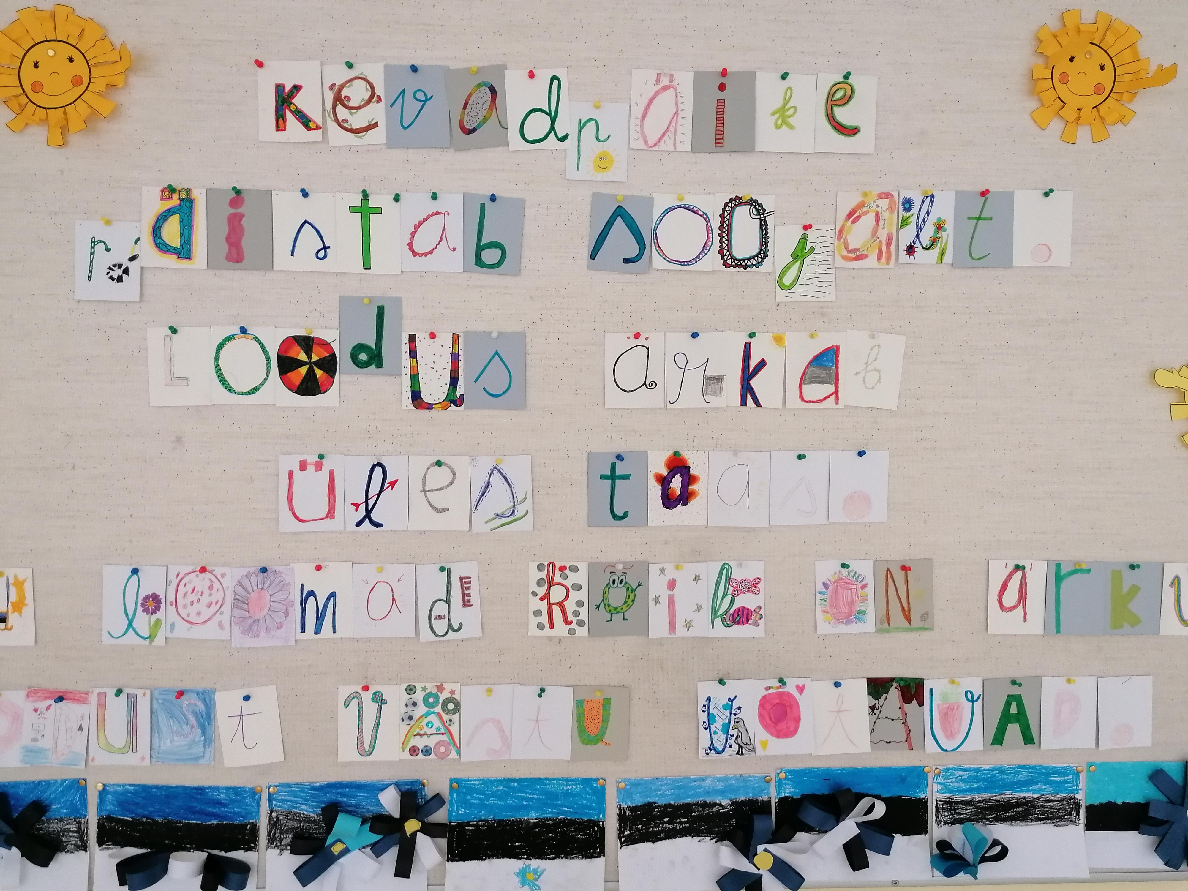 Esimese korruse stendidele moodustasime laste kirjutatud ja kaunistatud tähtedest luuletused. Iga algklassilaps püüdis leida enda kaunistatud tähe stendilt üles ja seda ka oma sõpradele näidata.