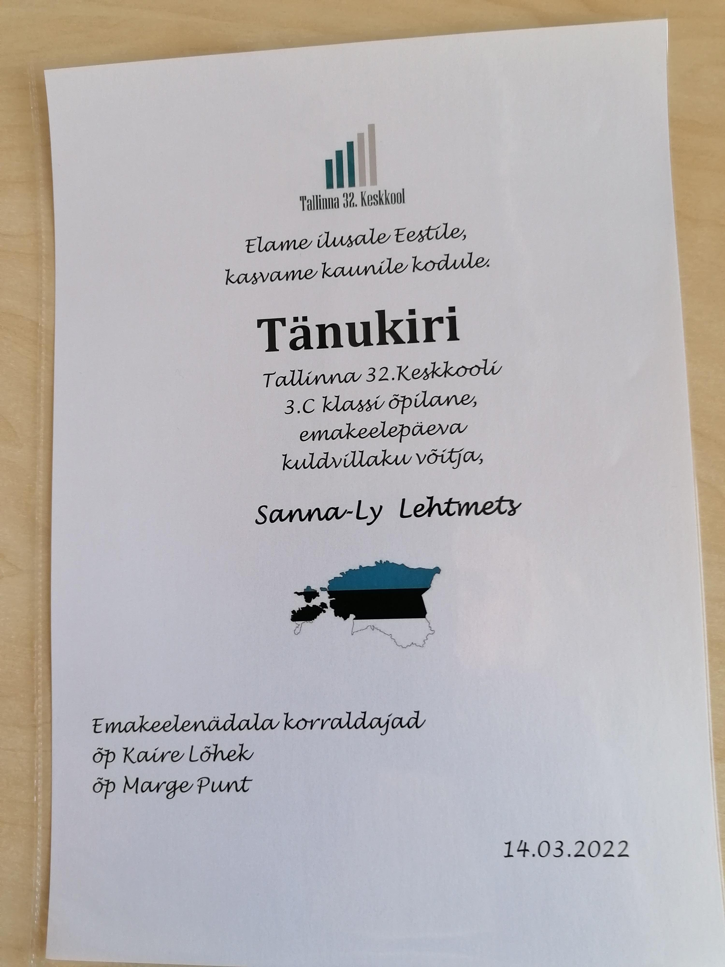 Emakeelepäeval, 14. märtsil vaatasime koos algklasside perega videotervitust, milles meie kooli gümnasist Inger Karjus räägib emakeelepäeva tähendusest: