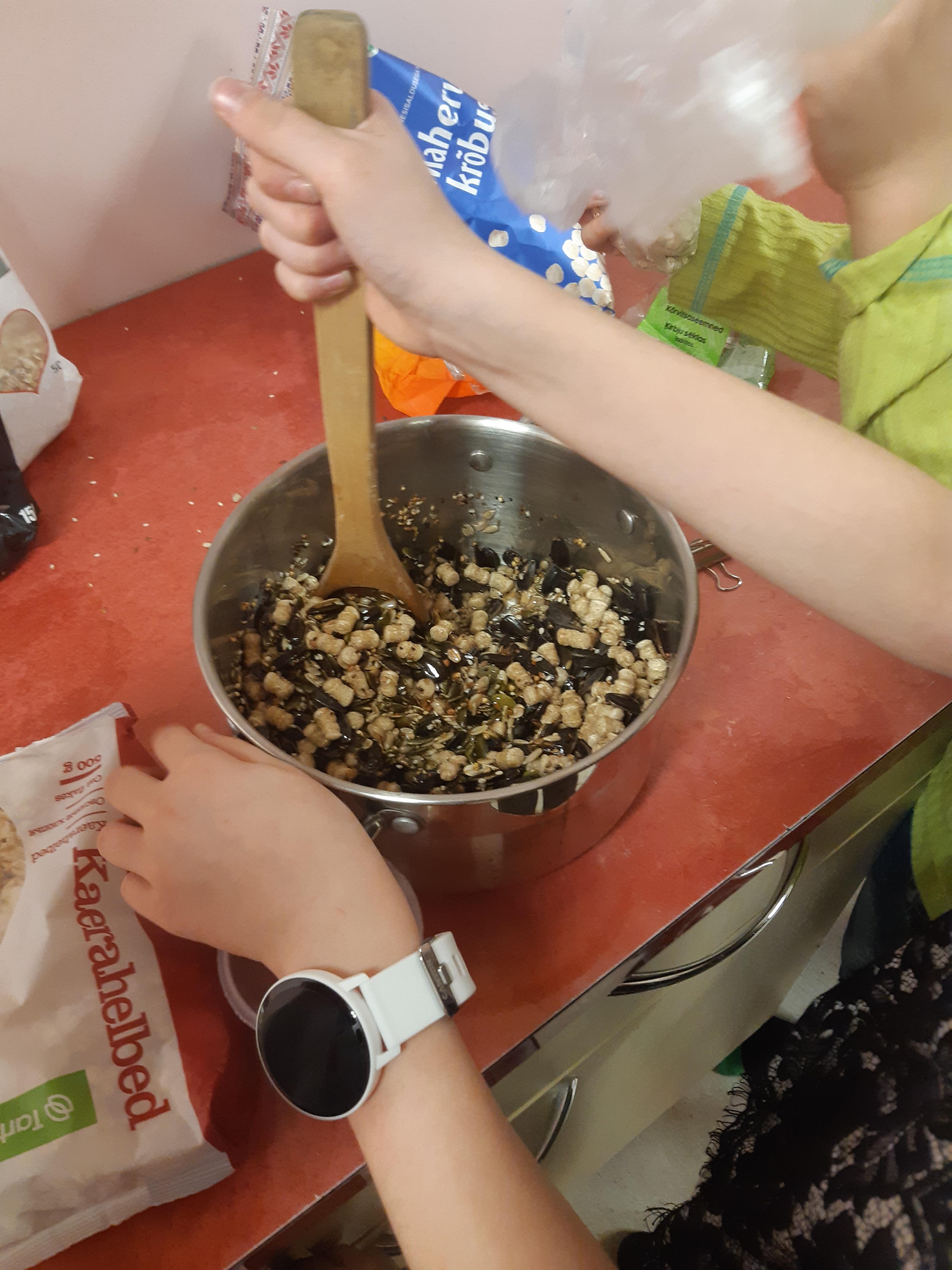 7.a uuris toidupakendeid. Teoreetilised teadmised kodusele uurimistööle andis toiduteadlase Rain Kuldjärve videoloeng „Kuidas lugeda pakendit“. Lisaks tegid õpilased fotod oma hommikusöökidest ja koos analüüsiti hommikuste valikute tervislikkust.
