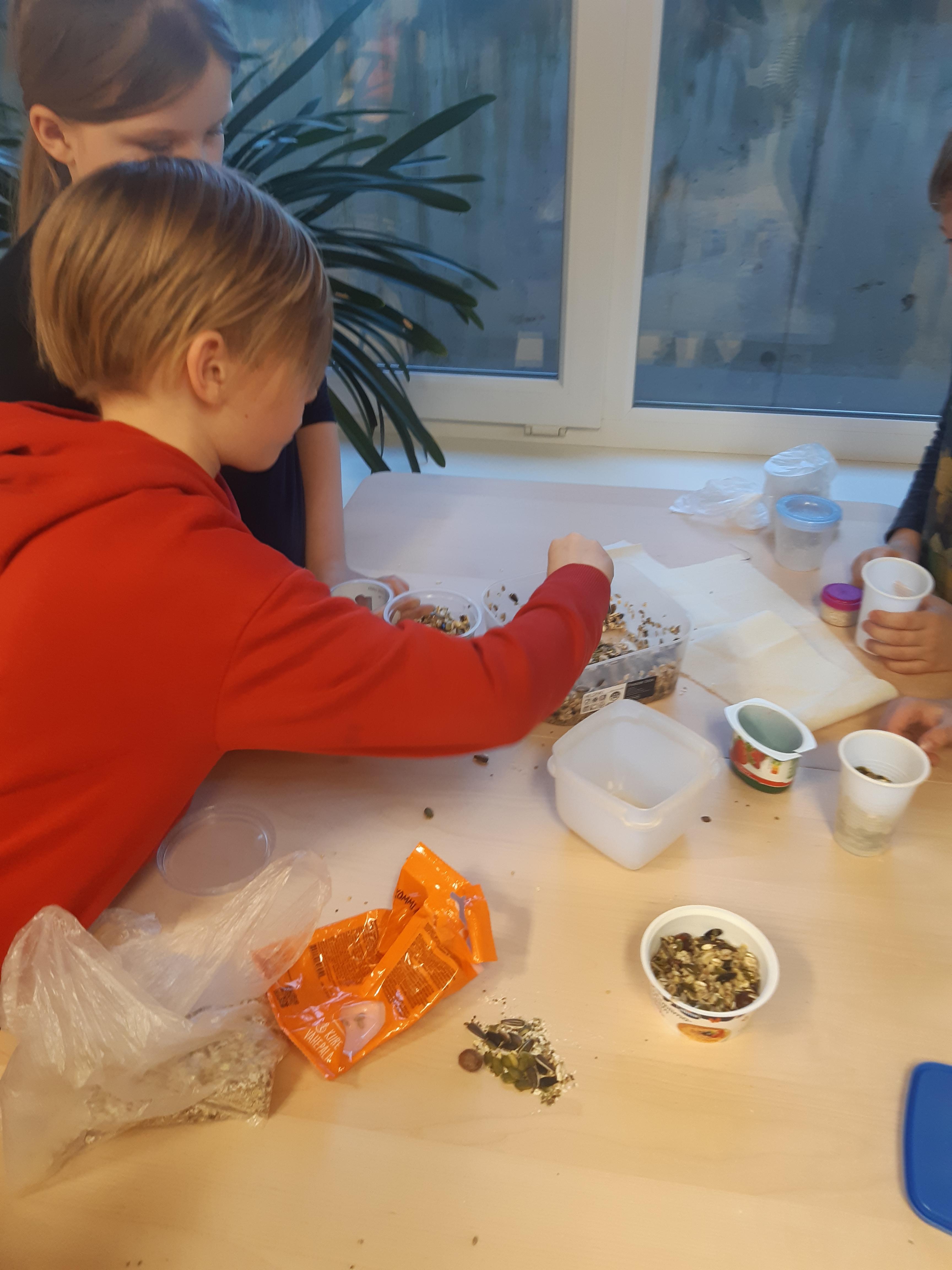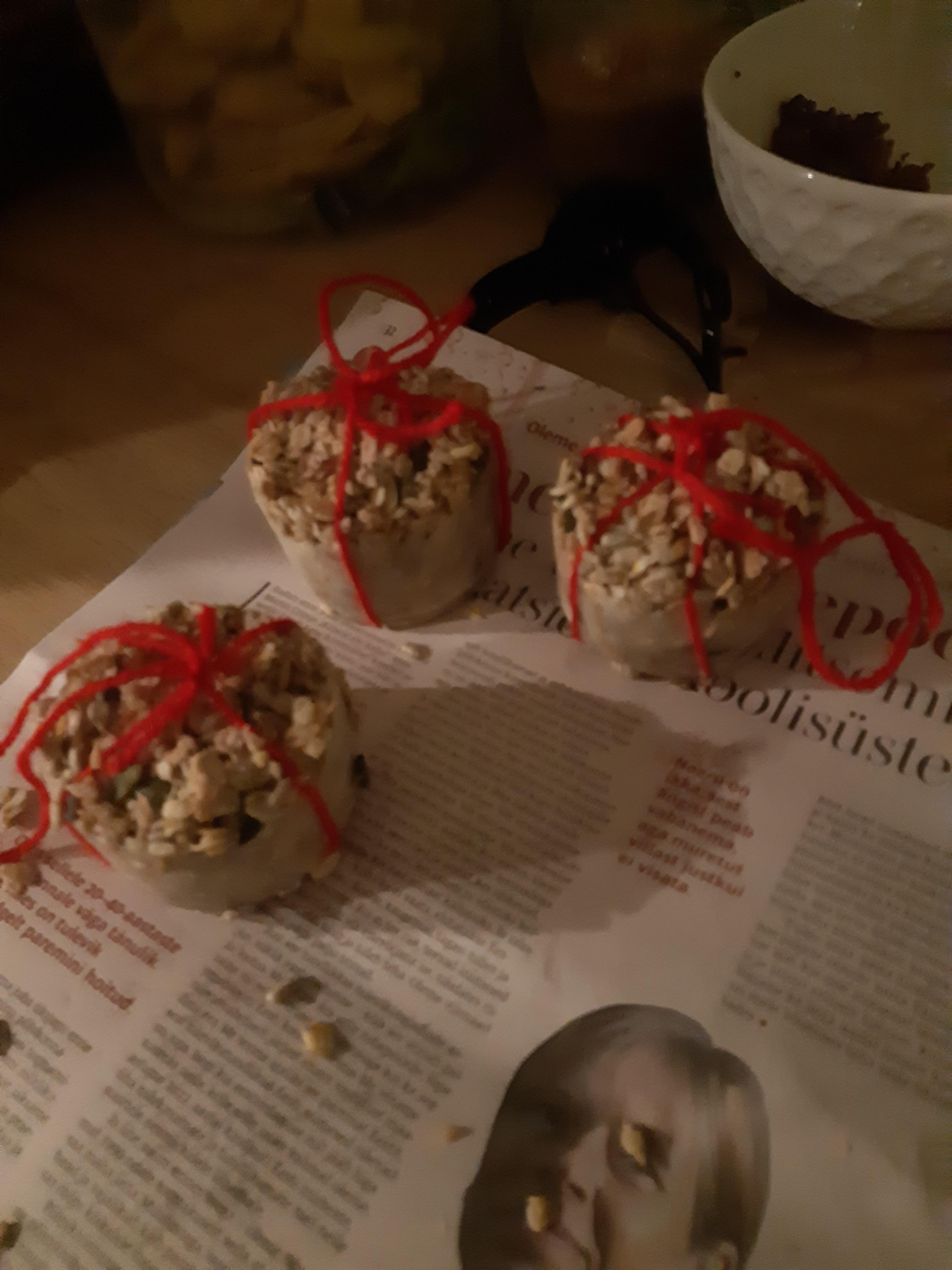 2.b hoolitses selle eest, et koolimaja akende taga talvituvad linnud samuti neile sobiva toidu saaksid. Koos meisterdati lindudele rasvapalle.