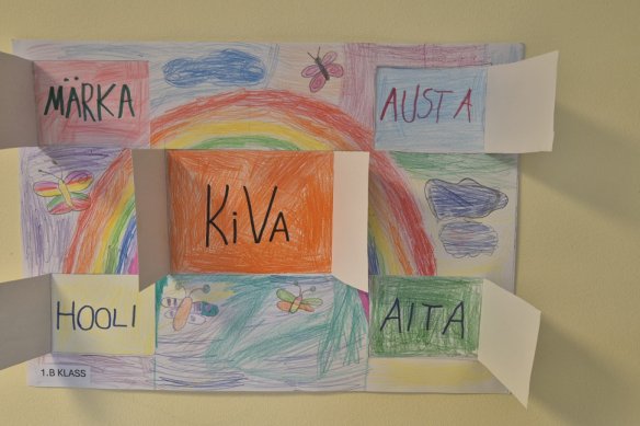 1.-4. klassid valmistasid KiVa sõnumitega plakateid, mis on kooliperele nähtavad I korruse seintel.