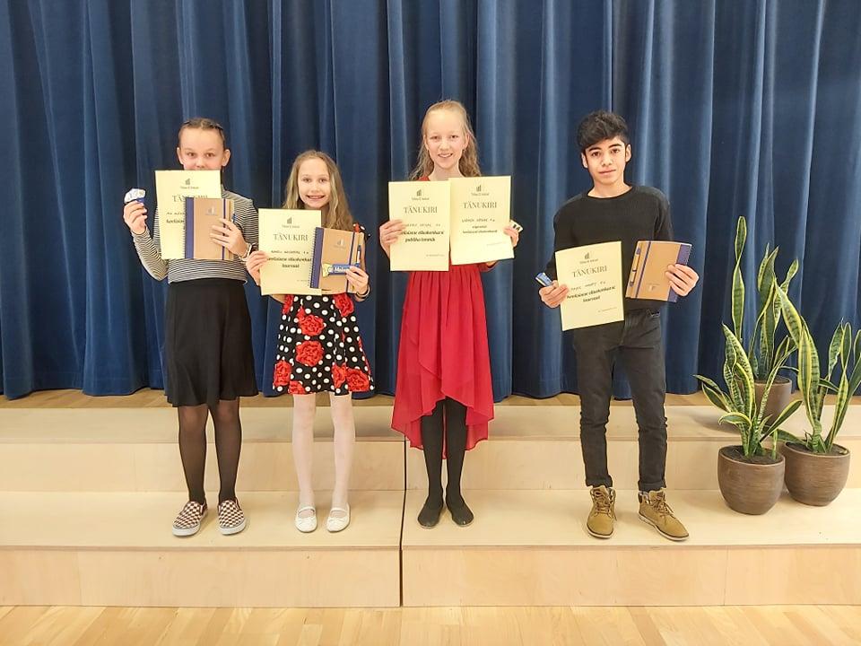 - 4.-6. klasside vanuseastmes pälvisid laureaadi tiitli 4.a klassi etlejad Mia Alexandria Verte ja Anneli Grünberg (juhendaja Kaire Lõhek) ning Fayez Hanafy (6.a, juhendaja Eva Kalbus). Publiku lemmiku tiitli ja žürii eripreemia sai Karmen Krisak (4.a, juhendaja Kaire Lõhek).