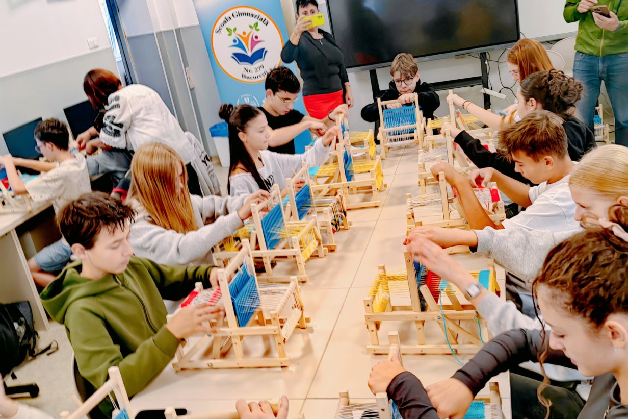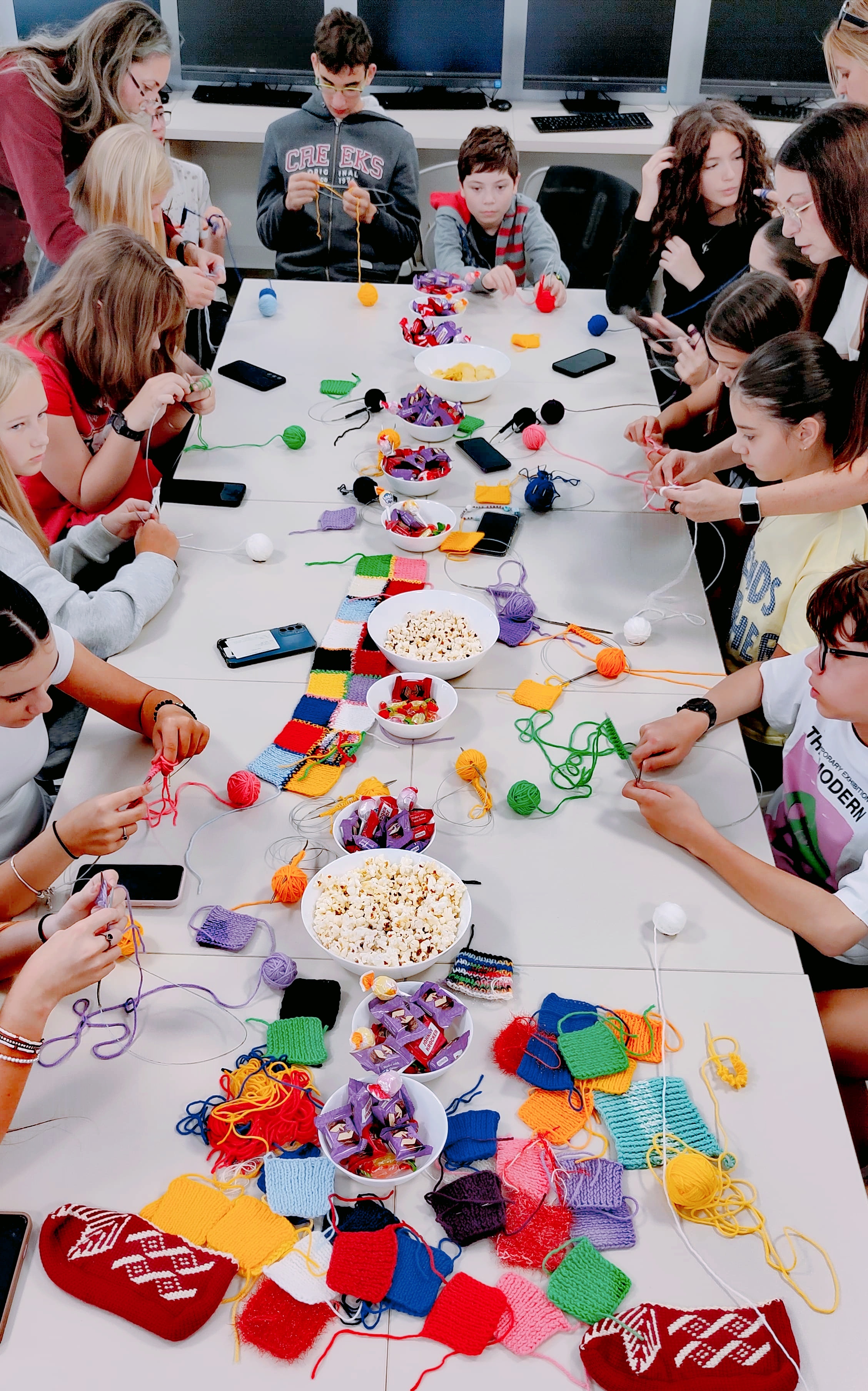 Throughout the project week, students and teachers participated in various creative workshops – learning how to design posters in Canva, weave rugs, and crochet traditional patterns.