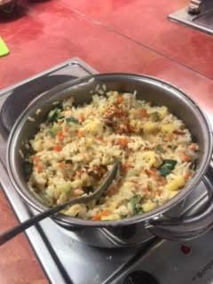 Meie koolis võtsid detsembrikuu alguses sellest kokandusprojektist osa 7.b ja 8.c klassi käsitöö- ja kodunduse rühma õpilased. Kooli tuli koos noortega kokkama kohviku Markofka Toidutuba peakokk ja meie kooli lapsevanem Inga Paenurm. Ühiselt valmistati kana-frikadellisuppi, taimset risotot ja karaskit.