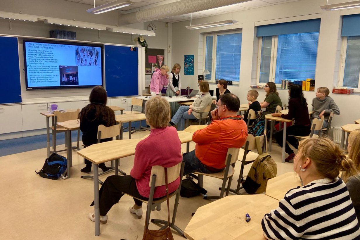Sel sügisel külastasid meie kooli Soome kooli neli õpilasesinduse liiget koos õpetajatega. Huvijuht Anete Pelmas ja õpilasesinduse liikmed tutvustasid sõpradele meie kooli, õpilasgruppide tegemisi ning samuti avanes soomlastel võimalus külastada draamatundi. Enne laevaleminekut tutvustati külalistele Tallinna vanalinna põnevaid vaatamisväärsusi.