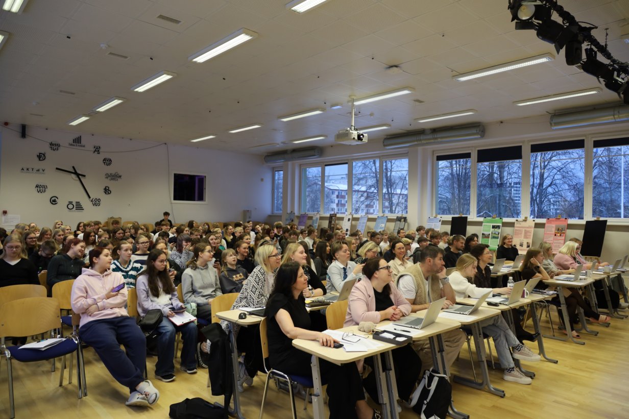 Päeva esimeses pooles kuuldi ja vaadati slaidiesitlusi, teises pooles tutvuti posterettekannetega. Lisaks 8. klasside õpilastele ja žüriile kuulasid esitlusi tähelepanelikult ka 7. klasside õpilased, kes kogusid ideid ja märkmeid töölehele, mida järgmisel õppeaastal ise loovtööde festivaliks valmistumisel kasutada.