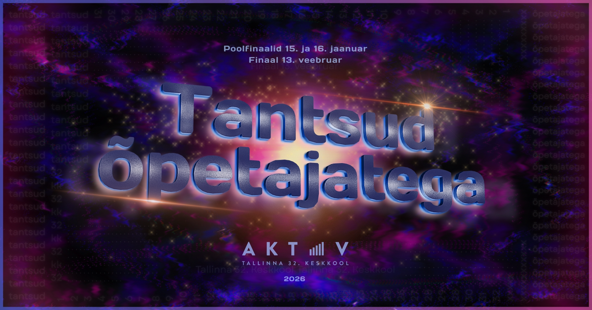 “Tantsud õpetajatega” sündmused toimuvad 15. ja 16. jaanuaril (poolfinaalid) ning 13. veebruaril (finaal) kell 18:00 Tallinna 32. Keskkooli aulas (Kiili 10, Mustamäe)! Jälgi sündmustesarja Facebookislink opens on new page ja hoia silma peal Aktiivi Instagrami kontol, kus liigub kõige operatiivsem info.