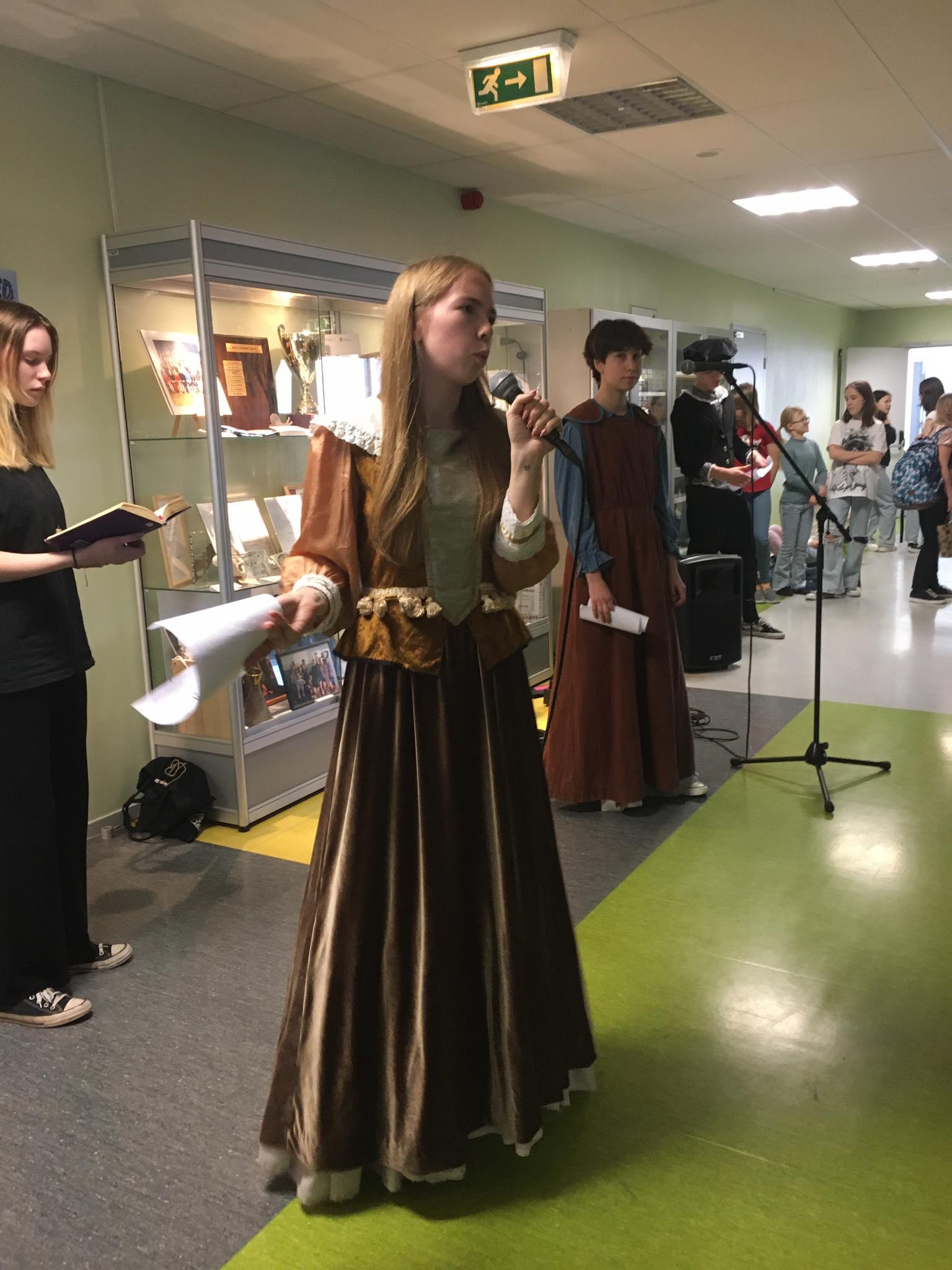 Vahetundides esitasid koridorides 10.d ja 11.d klassi õpilased W. Shakespeare´i sonette ja monolooge tema näidenditest.